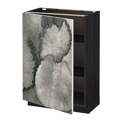 МЕТОД Напольный шкаф с полками - под дерево черный, Кальвиа с печатным рисунком, 60x37 см