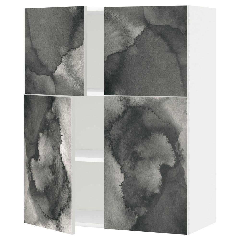 МЕТОД Навесной шкаф с полками/4дверцы - белый, Кальвиа с печатным рисунком