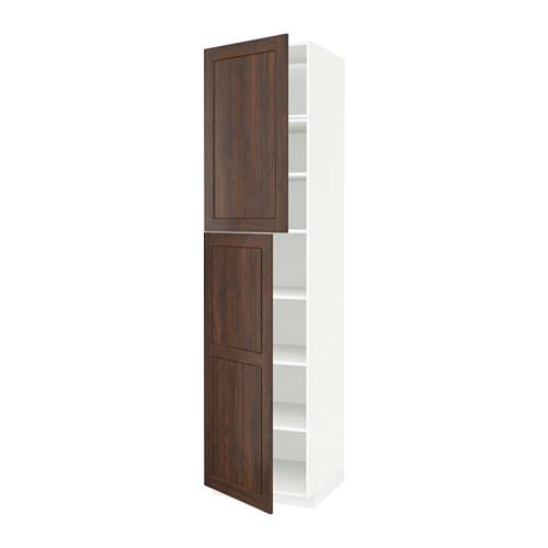 МЕТОД Высокий шкаф с полками/2 дверцы - белый, Эдсерум под дерево коричневый, 60x60x240 см
