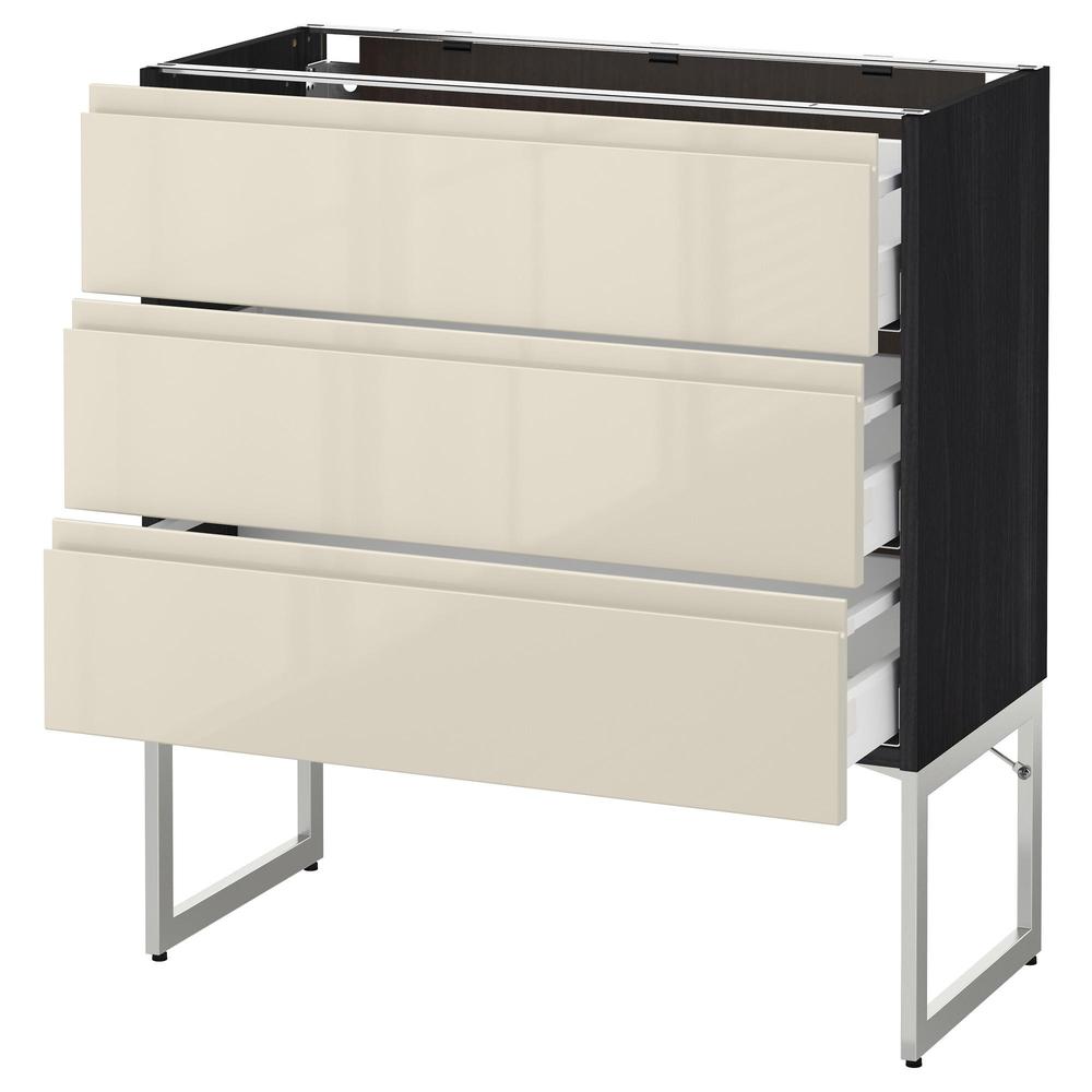 МЕТОД / МАКСИМЕРА Нплн шк 3 фрнт/3 средн ящика - под дерево черный, Воксторп глянцевый светло-бежевый, 80x37x60 см