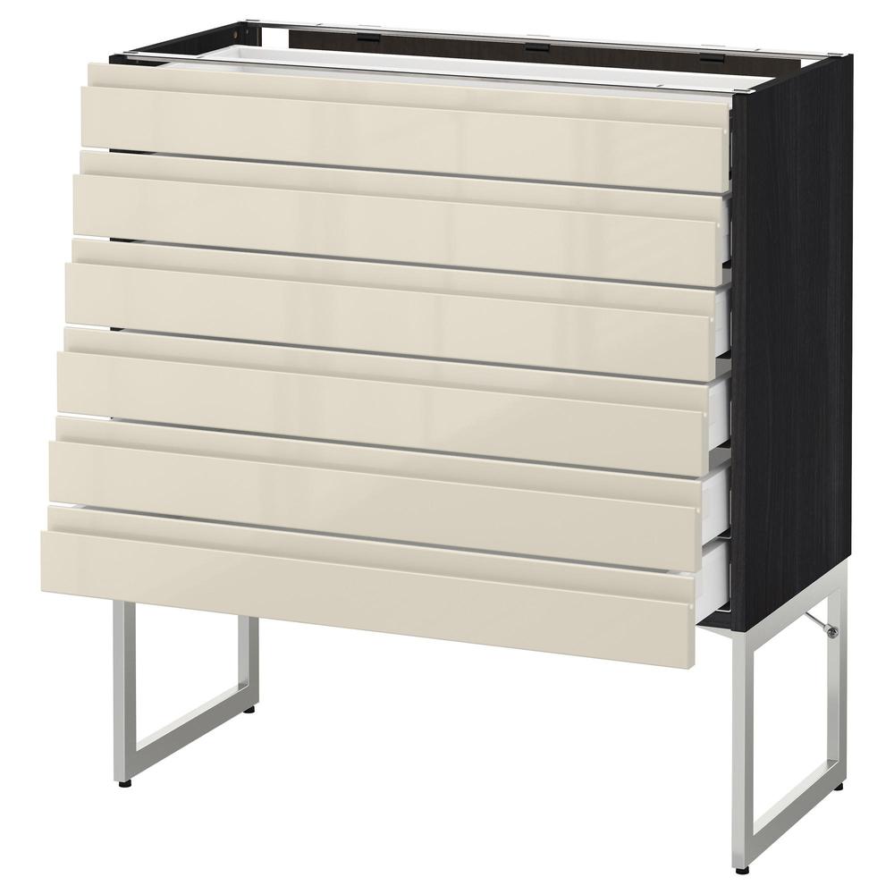 МЕТОД / МАКСИМЕРА Напольн шкаф 6фронт пнл/6 низ ящ - под дерево черный, Воксторп глянцевый светло-бежевый, 80x37x60 см
