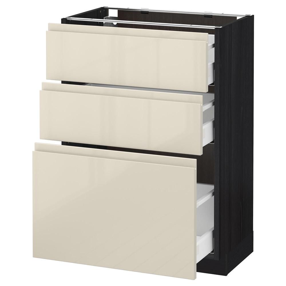 МЕТОД / МАКСИМЕРА Напольный шкаф с 3 ящиками - под дерево черный, Воксторп глянцевый светло-бежевый, 60x37 см