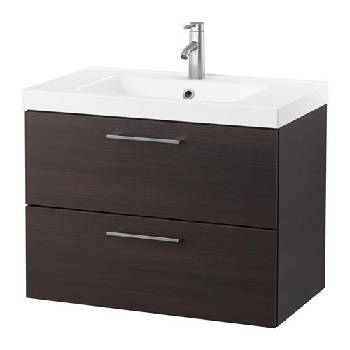 ГОДМОРГОН / ОДЕНСВИК Шкаф для раковины с 2 ящ - черно-коричневый