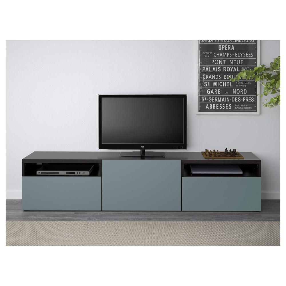 БЕСТО Тумба под ТВ, с дверцами - черно-коричневый/Вальвикен серо-бирюзовый, прозрачное стекло, 180x40x38 см, направляющие ящика, плавно закр 0.0/5 оценка (0 голосов)