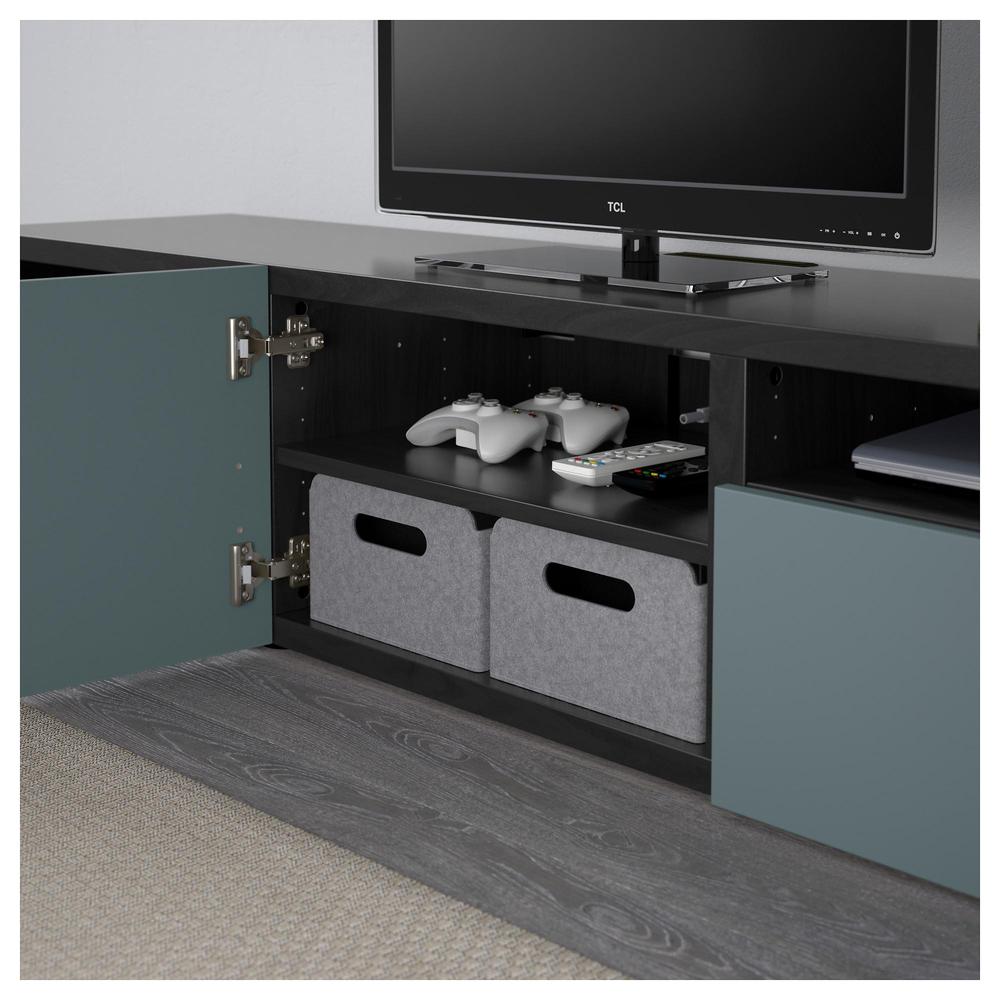 БЕСТО Тумба под ТВ - черно-коричневый/Вальвикен серо-бирюзовый, направляющие ящика, плавно закр