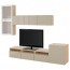 БЕСТО Шкаф для ТВ, комбин/стеклян дверцы - под беленый дуб/Сельсвикен глянцевый/бежевый матовое стекло, направляющие ящика, плавно закр