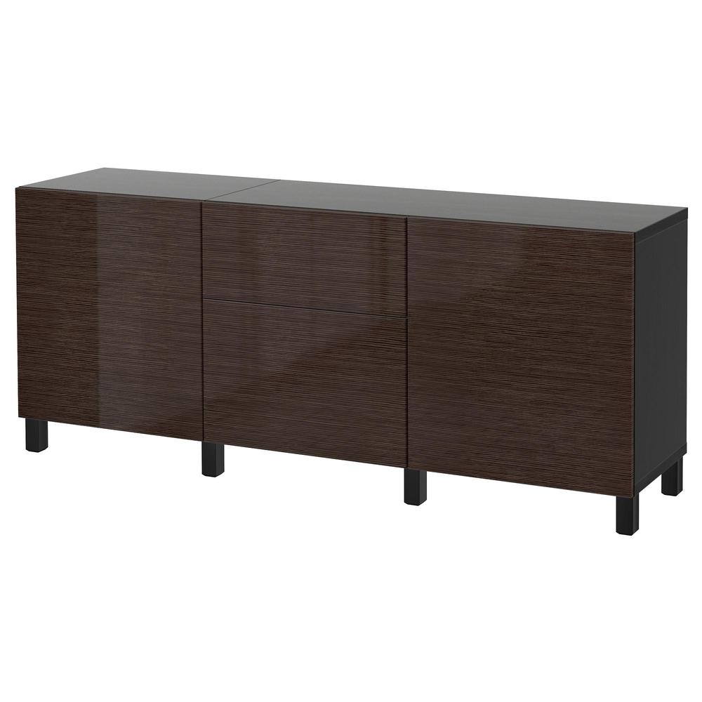 БЕСТО Комбинация для хранения с ящиками - черно-коричневый/Сельсвикен глянцевый/коричневый, направляющие ящика,нажимные 0.0/5 оценка (0 голосов)