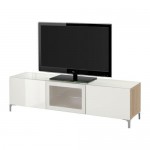 БЕСТО Тумба под ТВ - под беленый дуб/Сельсвикен глянцевый/белый матовое стекло, направляющие ящика,нажимные