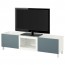 БЕСТО Тумба под ТВ, с дверцами - белый/Вальвикен серо-бирюзовый, прозрачное стекло, 180x40x38 см, направляющие ящика, плавно закр