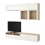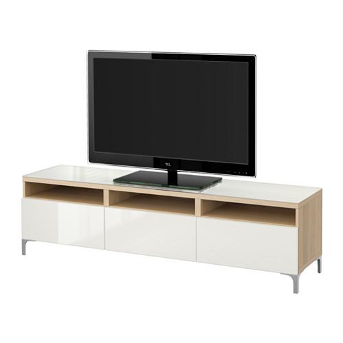 БЕСТО Тумба д/ТВ с ящиками - под беленый дуб/Сельсвикен глянцевый/белый, направляющие ящика,нажимные