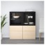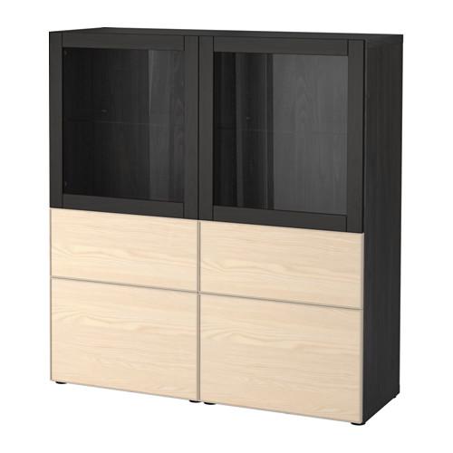 БЕСТО Комбинация д/хранения+стекл дверц - черно-коричневый/Инвикен ясеневый шпон, направляющие ящика, плавно закр