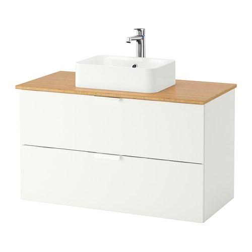 ГОДМОРГОН/ТОЛКЕН / ХОРВИК Шкаф со столешницей 45x32 раковина - бамбук, белый