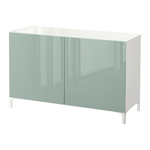 БЕСТО Комбинация для хранения с дверцами - белый/Сельсвикен глянцевый/серо-зеленый светлый