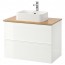 ГОДМОРГОН/ТОЛКЕН / ХОРВИК Шкаф со столешницей 45x32 раковина - бамбук, глянцевый белый
