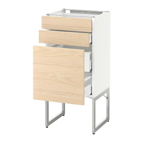МЕТОД / МАКСИМЕРА Напольн шкаф 3фронт пнл/2низ/2ср ящ - белый, Аскерсунд под светлый ясень, 40x37x60 см