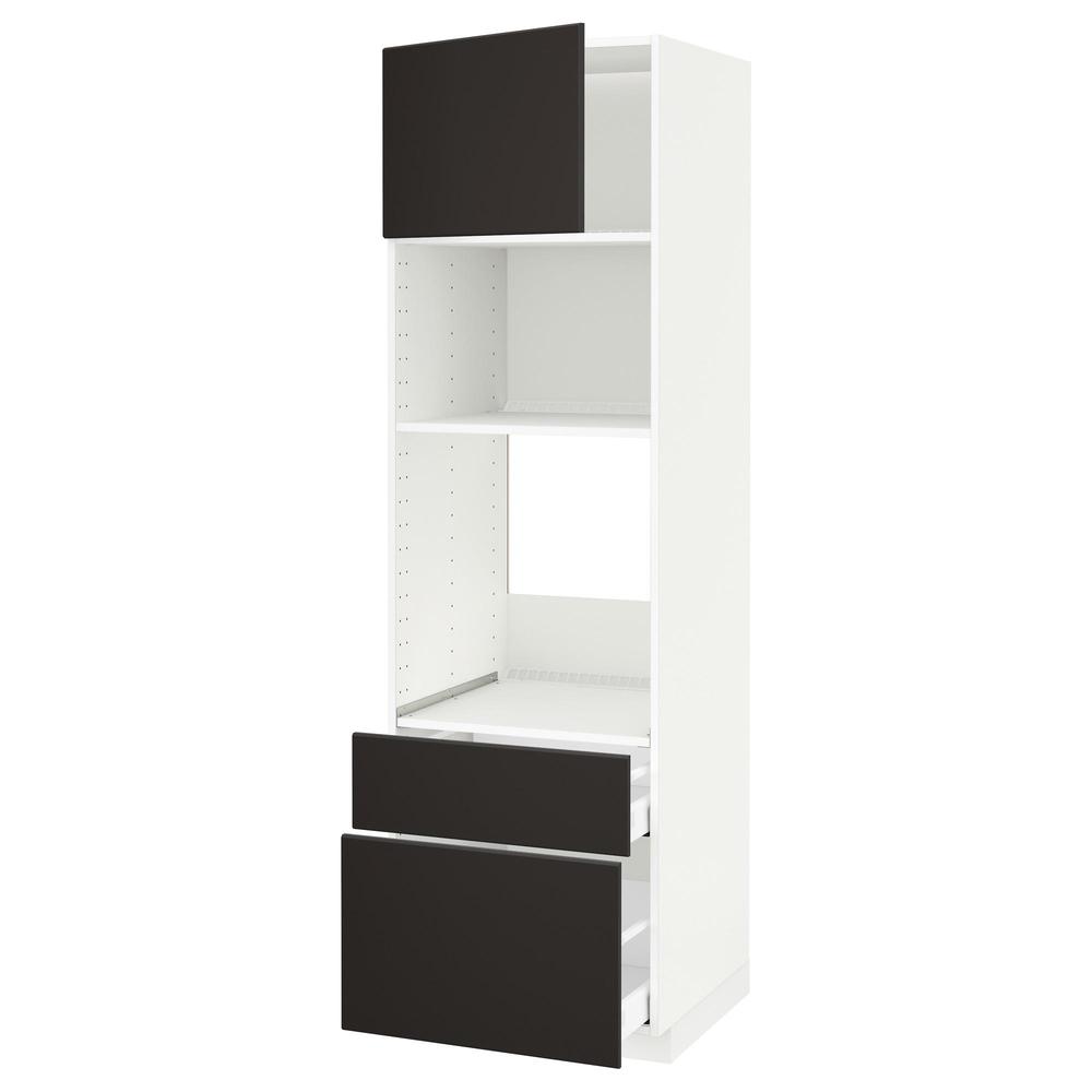МЕТОД / МАКСИМЕРА Высок шкаф д/духовки/СВЧ/дверца/2ящ - белый, Кунгсбакка антрацит, 60x60x200 см