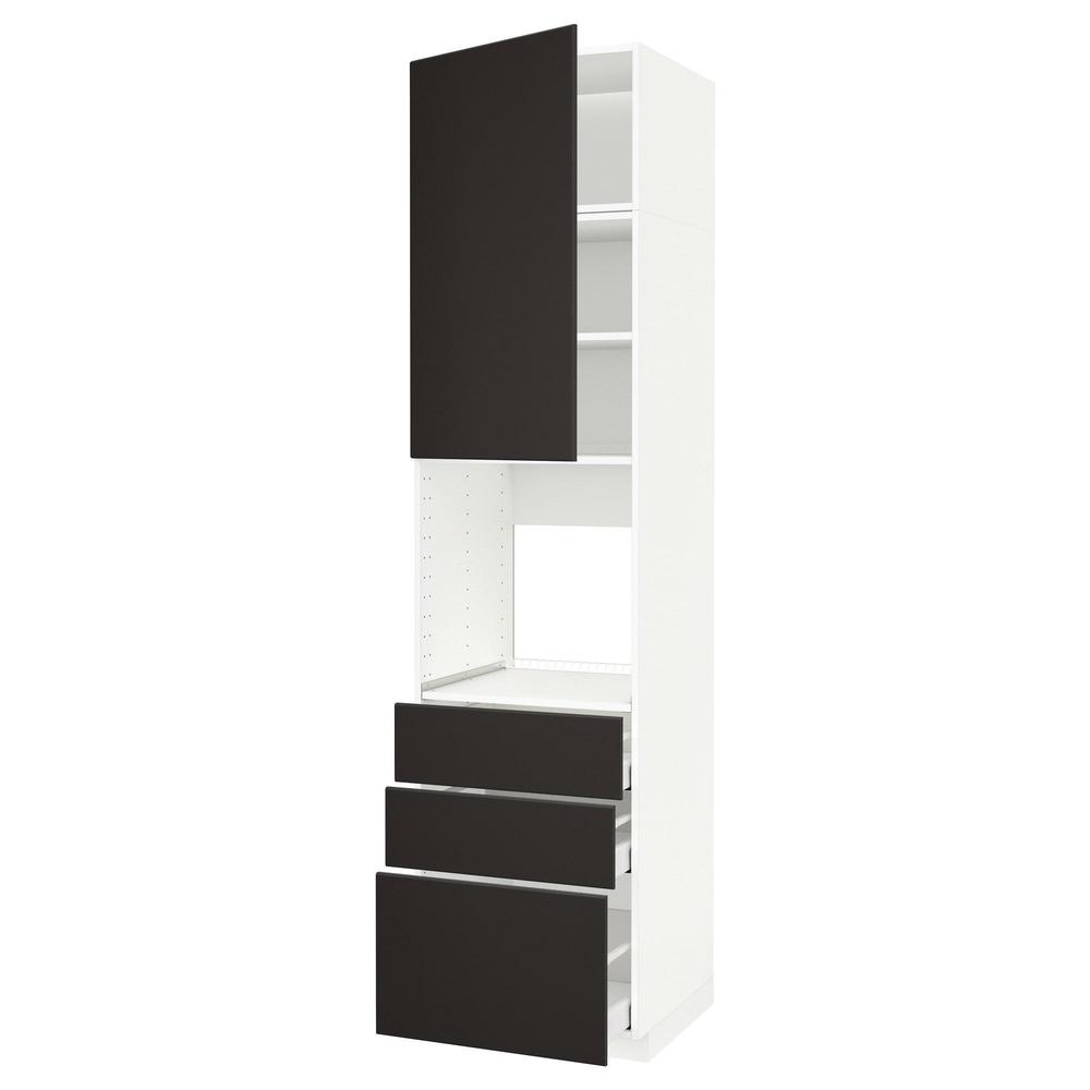 МЕТОД / МАКСИМЕРА Высокий шкаф д/духовки/дверь/3ящика - белый, Кунгсбакка антрацит, 60x60x240 см