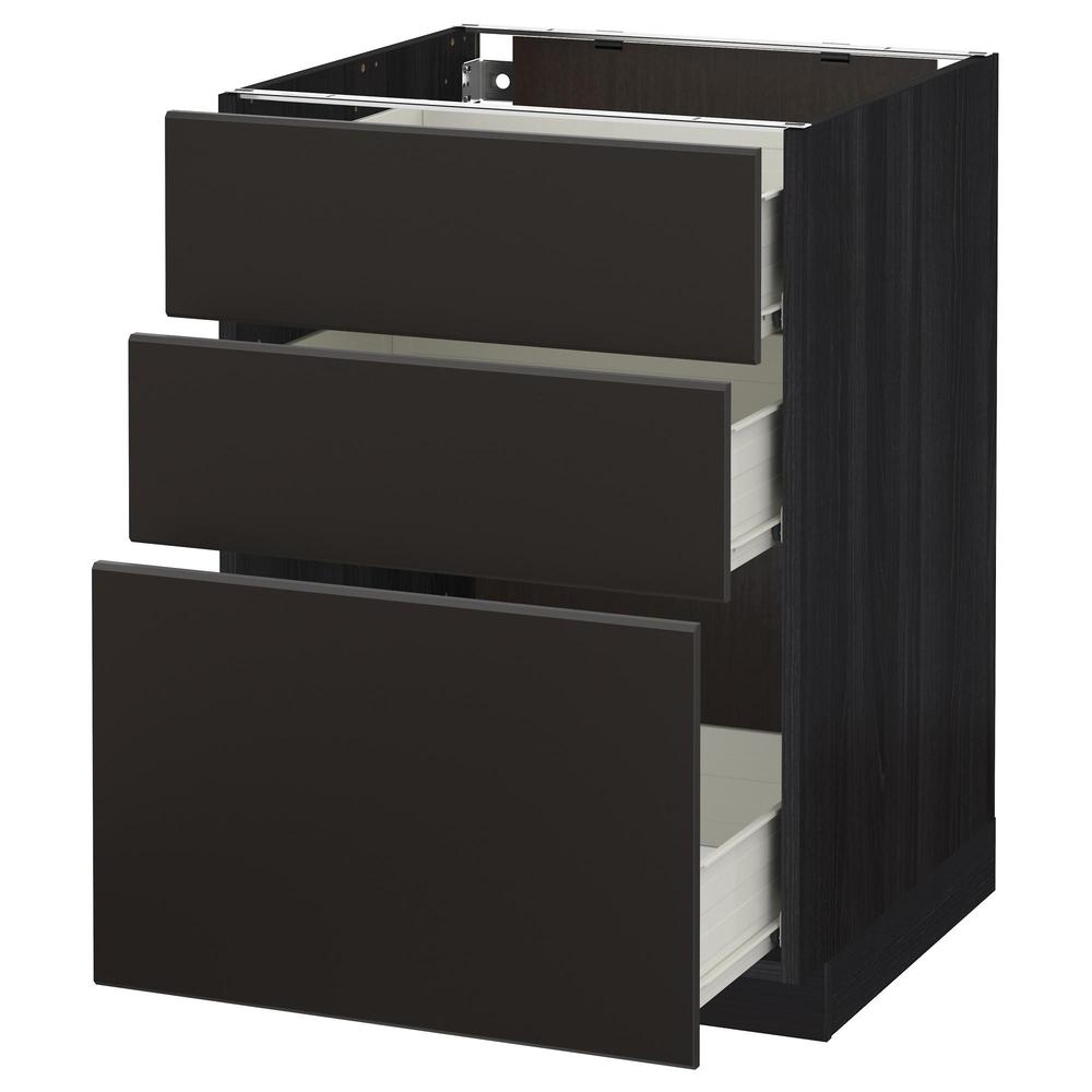 МЕТОД / ФОРВАРА Напольный шкаф с 3 ящиками - под дерево черный, Кунгсбакка антрацит, 60x60 см