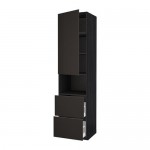 МЕТОД / МАКСИМЕРА Высокий шкаф д/СВЧ+дверца/3 ящика - под дерево черный, Кунгсбакка антрацит, 60x60x200 см