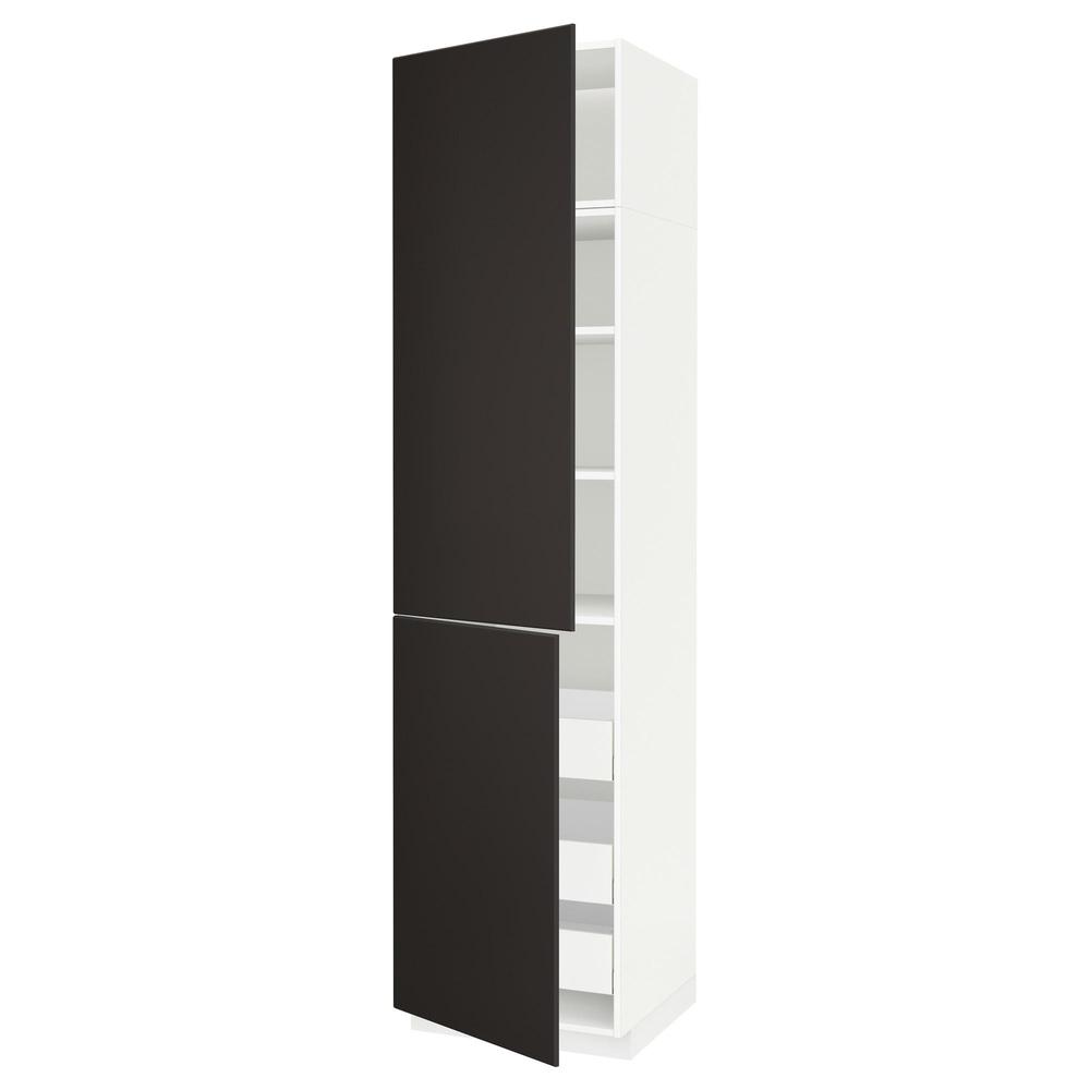 МЕТОД / МАКСИМЕРА Высокий шкаф+полки/3 ящика/2 дверцы - белый, Кунгсбакка антрацит, 60x60x240 см