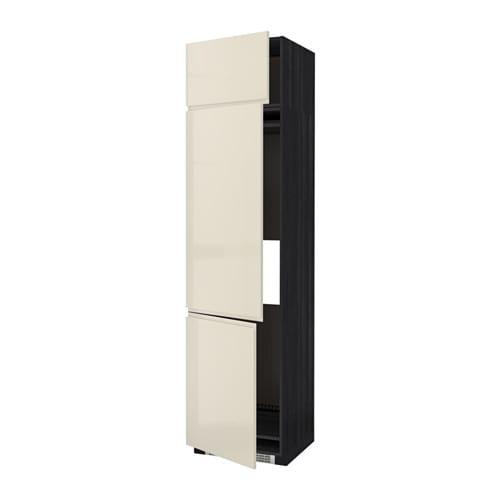МЕТОД Выс шкаф для хол/мороз с 3 дверями - под дерево черный, Воксторп глянцевый светло-бежевый, 60x60x240 см
