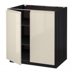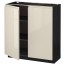 МЕТОД Напол шкаф с полками/2двери - под дерево черный, Воксторп глянцевый светло-бежевый, 80x37 см