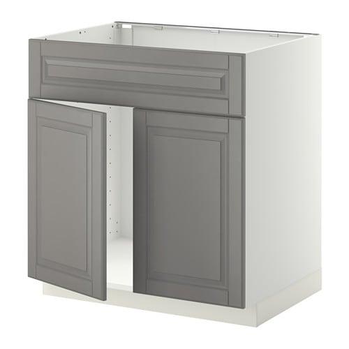 МЕТОД Напольн шкаф п-мойку 2 двр/фрн пнл - белый, Будбин серый