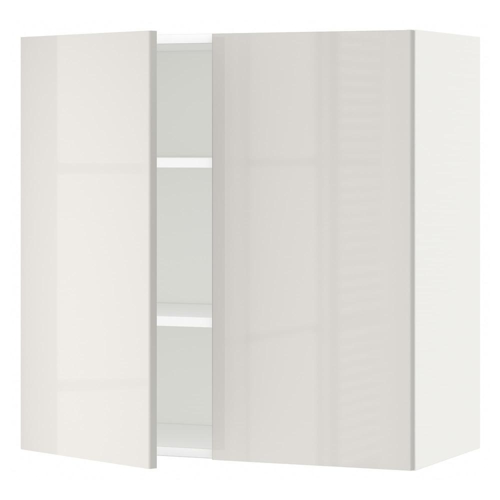 МЕТОД Навесной шкаф с полками/2дверцы - белый, Рингульт глянцевый светло-серый, 80x80 см