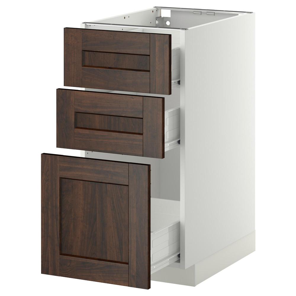 МЕТОД / ФОРВАРА Напольный шкаф с 3 ящиками - белый, Эдсерум под дерево коричневый, 40x60 см