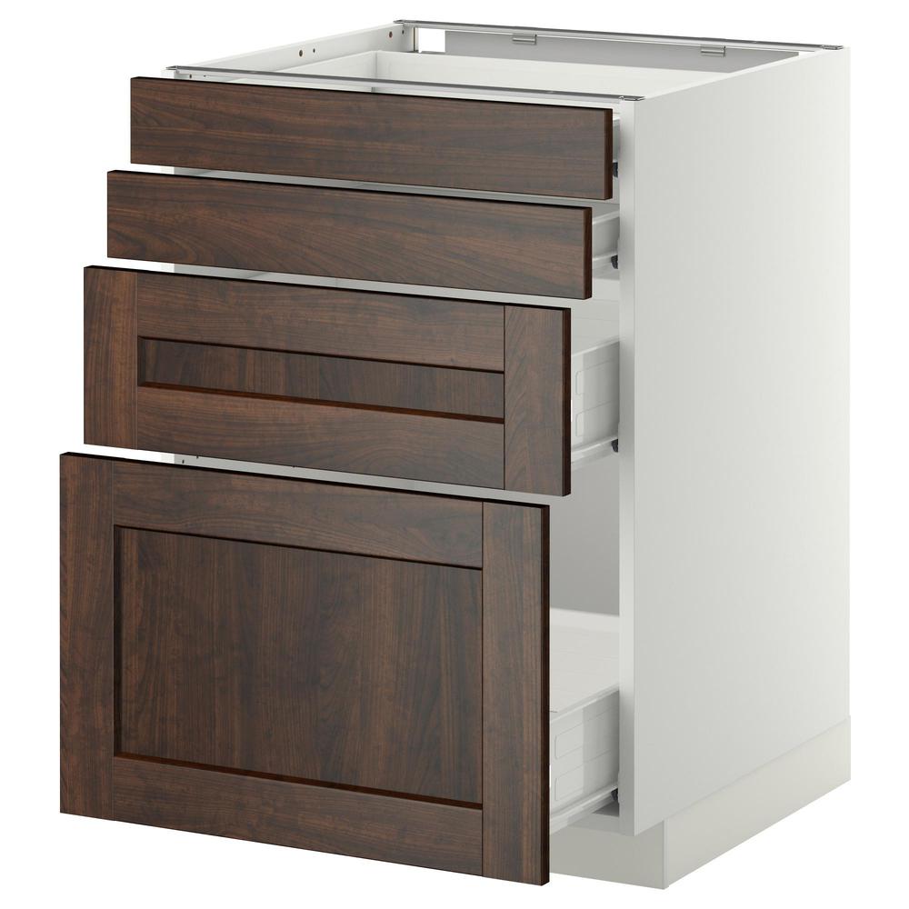 МЕТОД / ФОРВАРА Напольн шкаф 4 фронт панели/4 ящика - белый, Эдсерум под дерево коричневый, 60x60 см