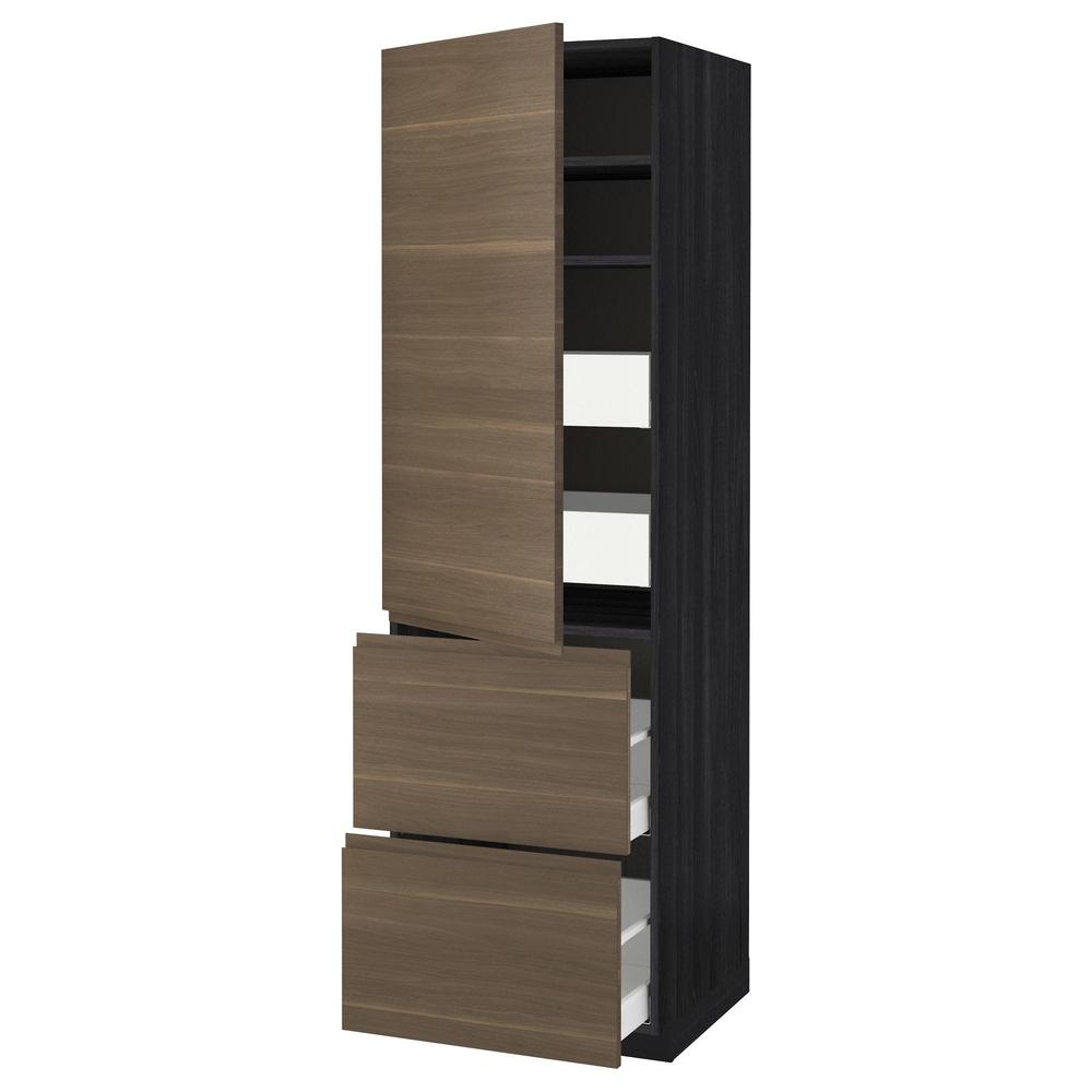 МЕТОД / МАКСИМЕРА Высокий шкаф+полки/4 ящика/2дверцы - под дерево черный, Воксторп под грецкий орех, 60x60x200 см