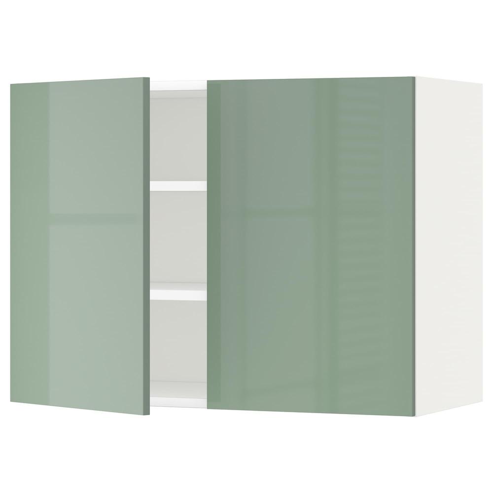 МЕТОД Навесной шкаф с полками/2дверцы - белый, Калларп глянцевый светло-зеленый, 80x60 см