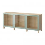 БЕСТО Комбинация для хранения с дверцами - черно-коричневый Глассвик/глянцевый/серо-зеленый светлый прозрачное стекло