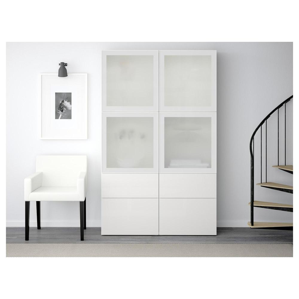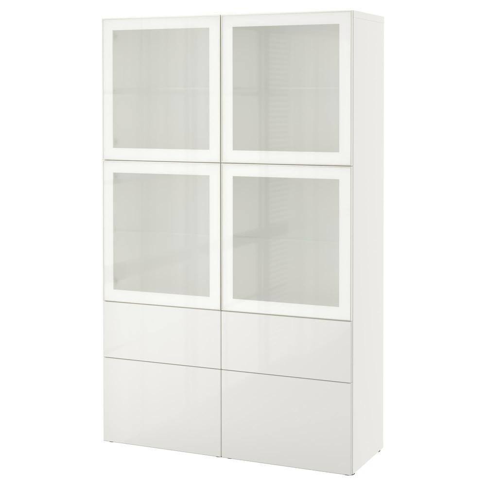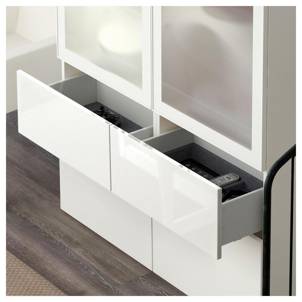БЕСТО Комбинация д/хранения+стекл дверц - белый/Сельсвикен глянцевый/белый матовое стекло, направляющие ящика, плавно закр