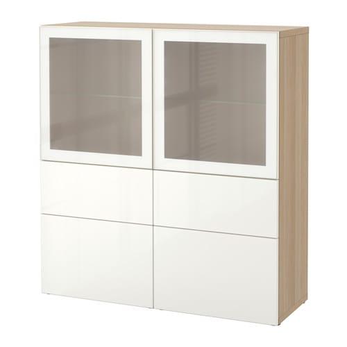 БЕСТО Комбинация д/хранения+стекл дверц - под беленый дуб/Сельсвикен глянцевый/белый матовое стекло, направляющие ящика, плавно закр