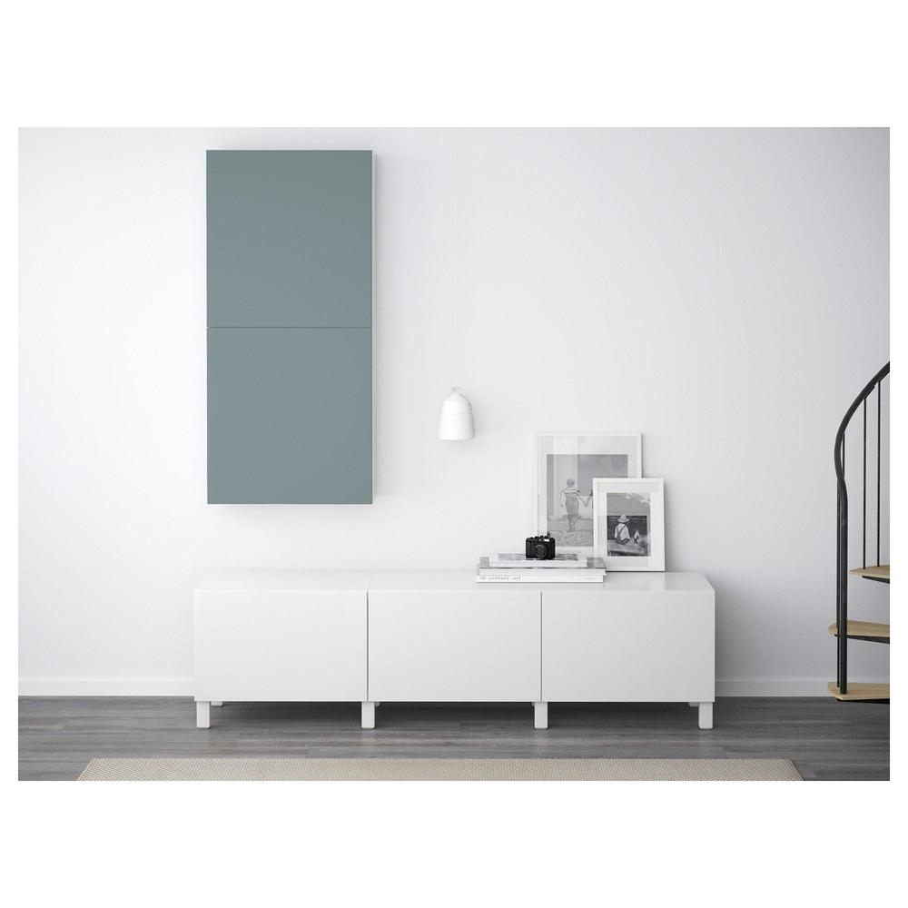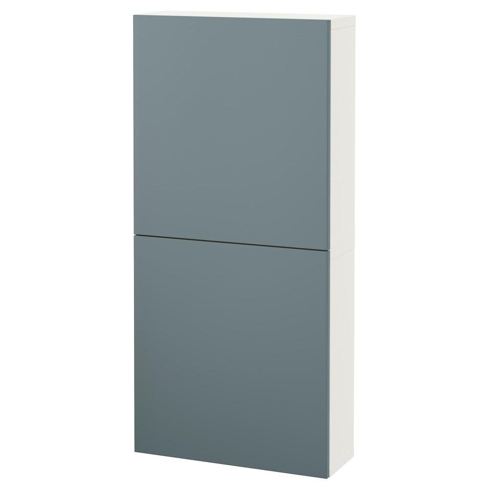 БЕСТО Навесной шкаф с 2 дверями - белый/Вальвикен серо-бирюзовый