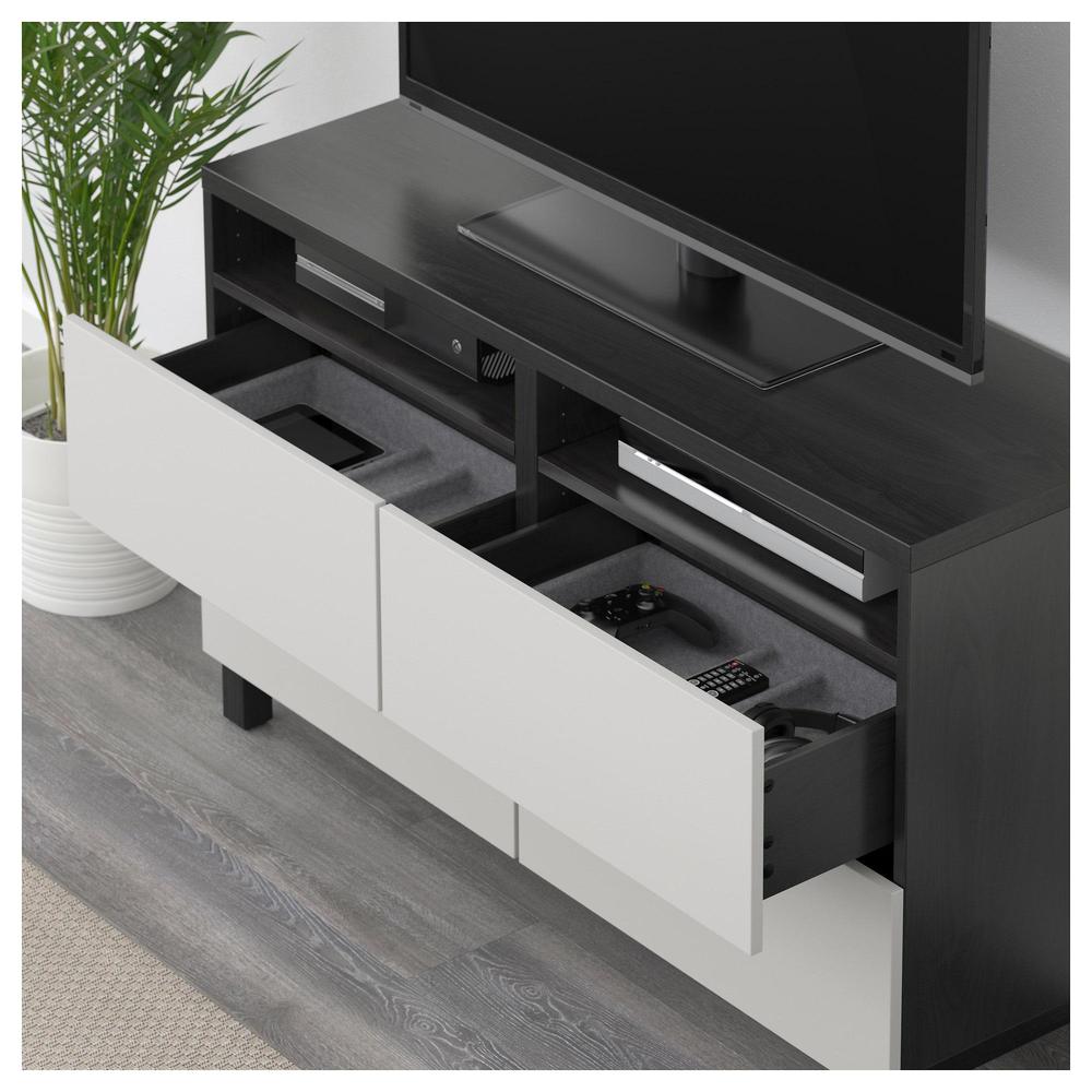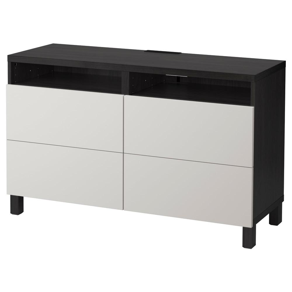 БЕСТО Тумба д/ТВ с ящиками - черно-коричневый/Лаппвикен светло-серый, направляющие ящика, плавно закр