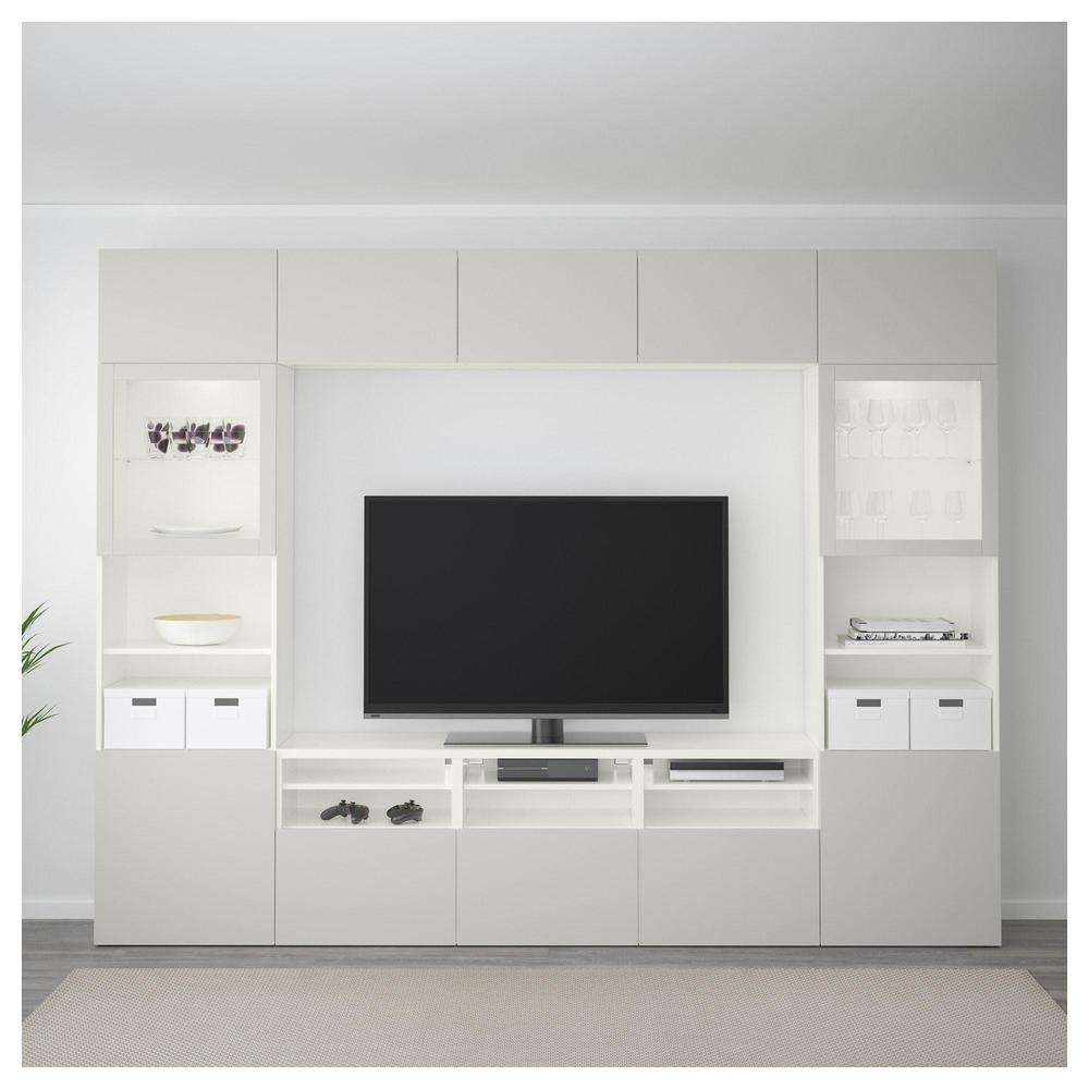БЕСТО Шкаф для ТВ, комбин/стеклян дверцы - белый/Лаппвикен светло-серый прозрачное стекло, направляющие ящика, плавно закр
