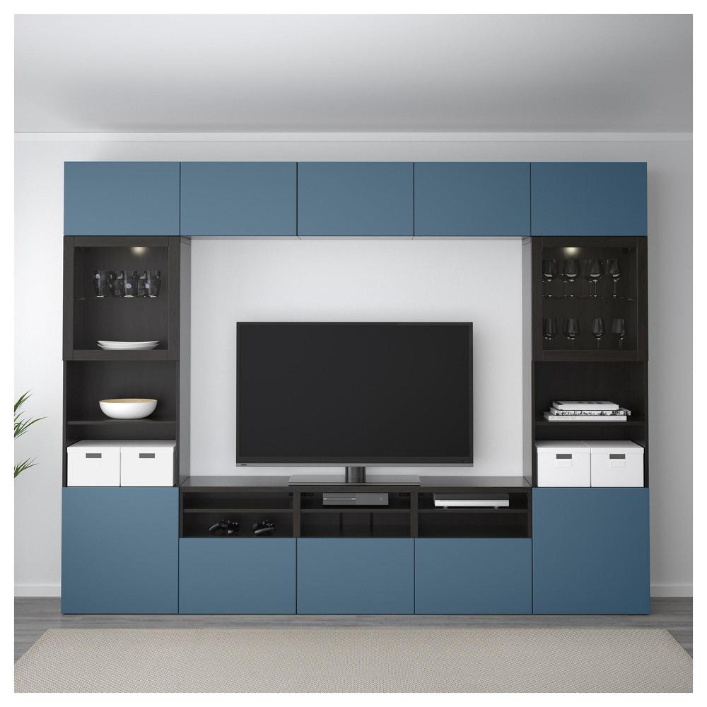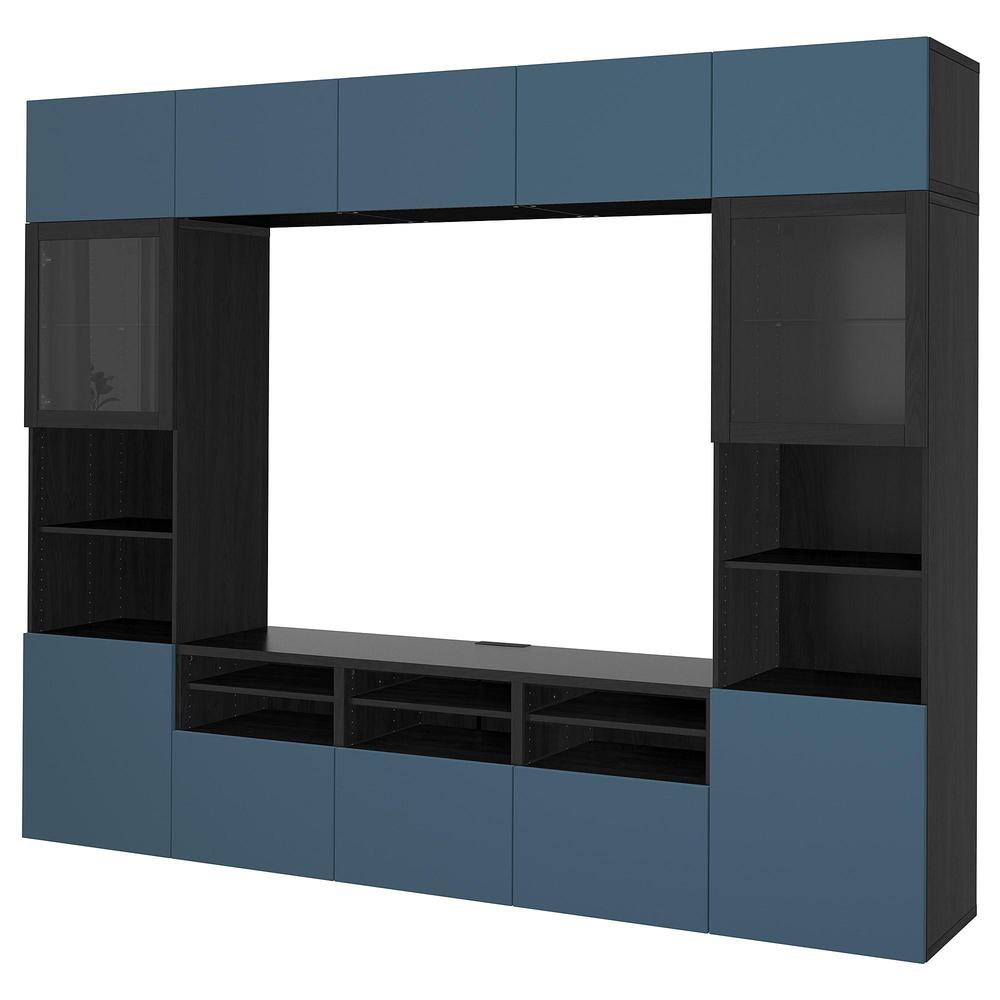 БЕСТО Шкаф для ТВ, комбин/стеклян дверцы - черно-коричневый Вальвикен/темно-синий прозрачное стекло, направляющие ящика, плавно закр 0.0/5 оценка (0 голосов)