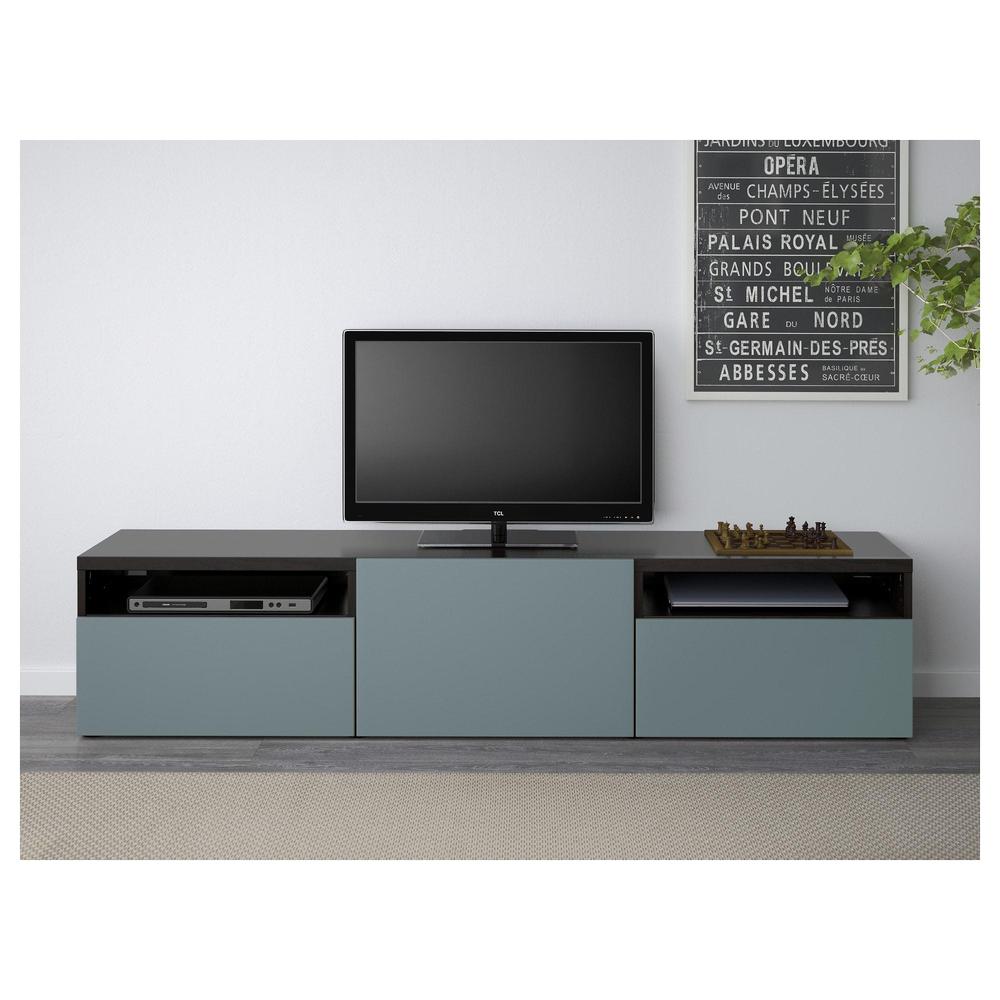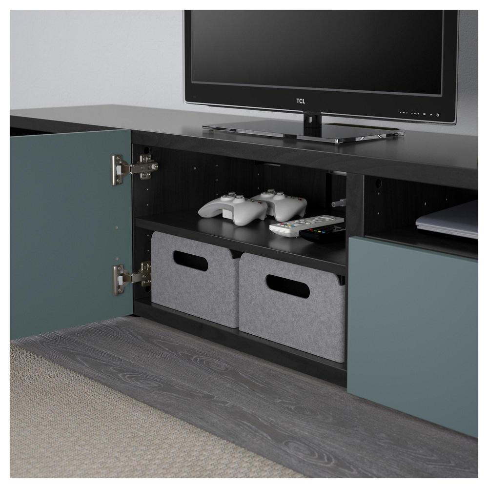 БЕСТО Тумба под ТВ - черно-коричневый/Вальвикен серо-бирюзовый, направляющие ящика,нажимные