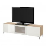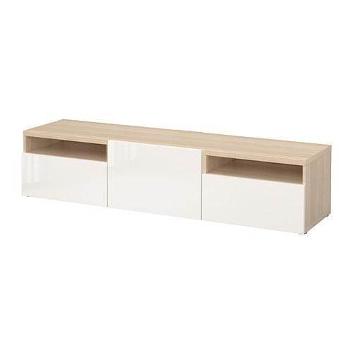 БЕСТО Тумба под ТВ - под беленый дуб/Сельсвикен глянцевый/белый, направляющие ящика, плавно закр
