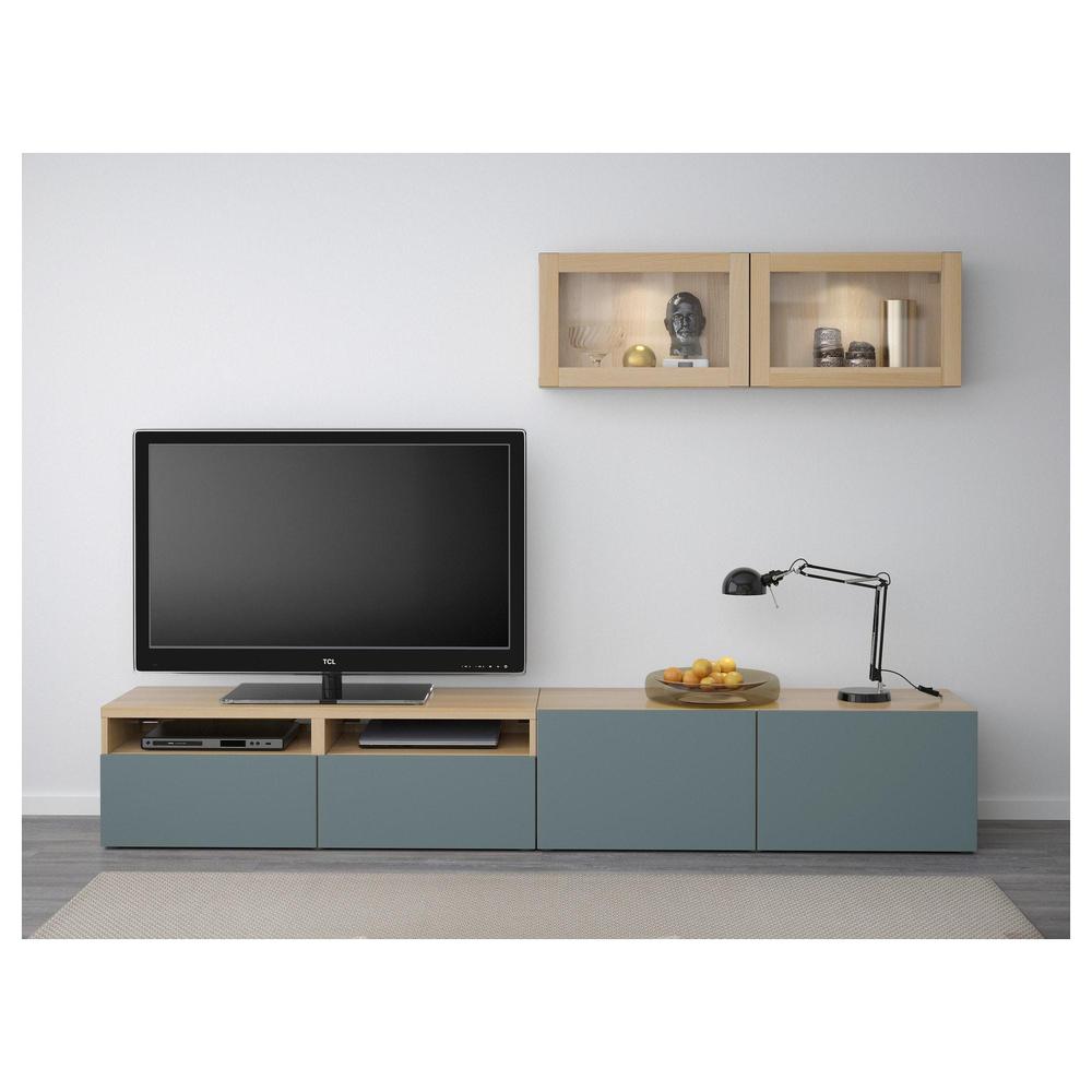 БЕСТО Шкаф для ТВ, комбин/стеклян дверцы - под беленый дуб/Вальвикен серо-бирюзовый, прозрачное стекло, направляющие ящика,нажимные 0.0/5 оценка (0 голосов)