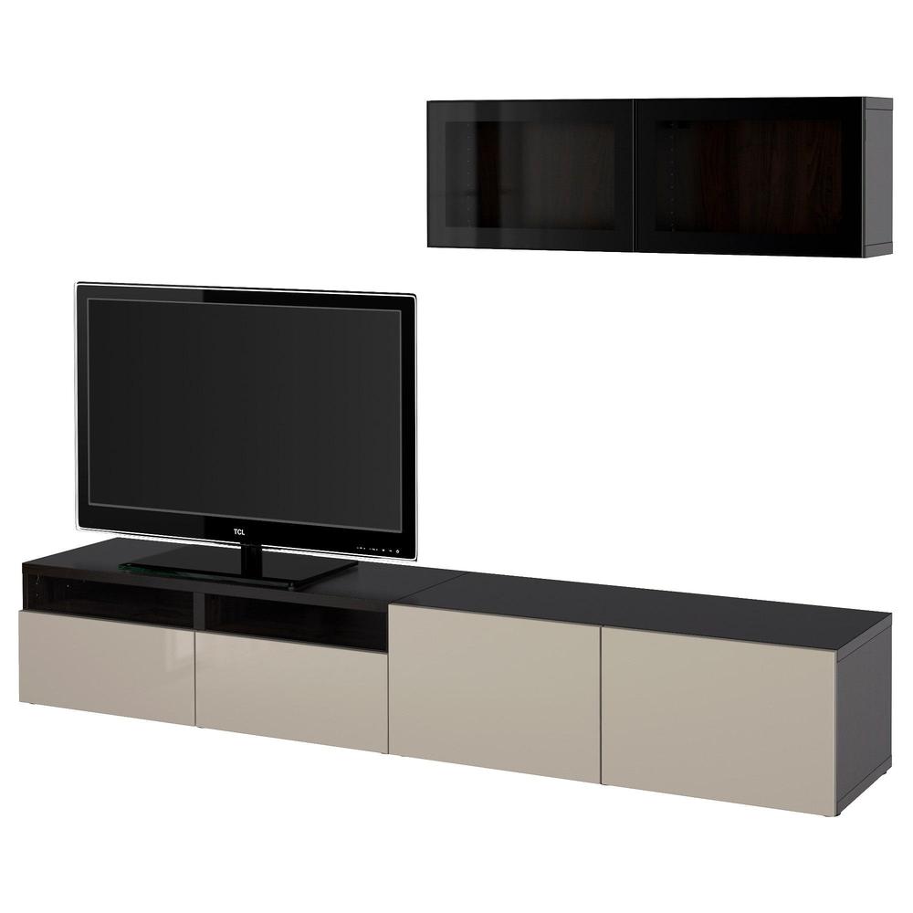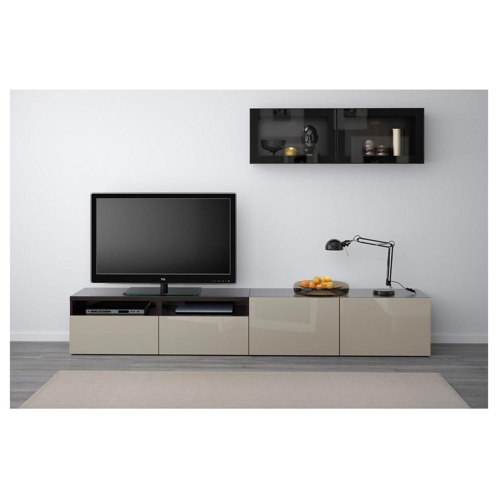 БЕСТО Шкаф для ТВ, комбин/стеклян дверцы - черно-коричневый/Сельсвикен глянцевый/бежевый прозрачное стекло, направляющие ящика,нажимные
