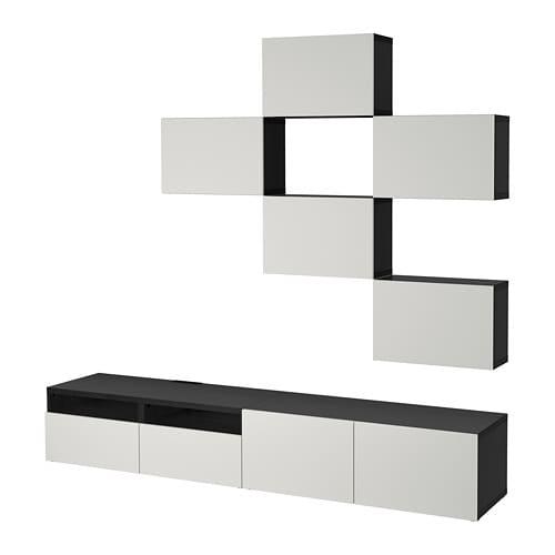 БЕСТО Шкаф для ТВ, комбинация - черно-коричневый/Лаппвикен светло-серый, направляющие ящика, плавно закр