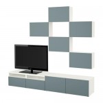БЕСТО Шкаф для ТВ, комбинация - белый/Вальвикен серо-бирюзовый, направляющие ящика, плавно закр