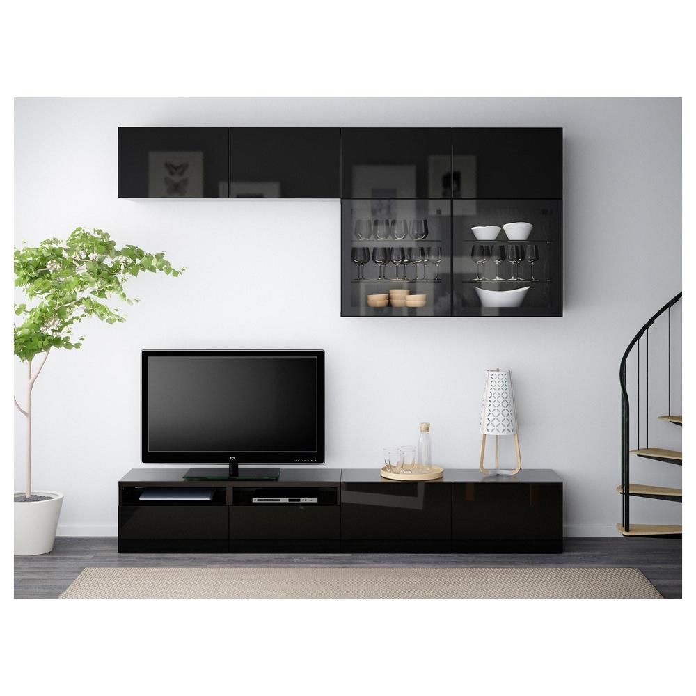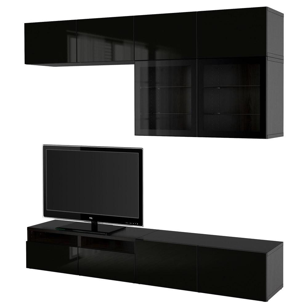 БЕСТО Шкаф для ТВ, комбин/стеклян дверцы - черно-коричневый/Сельсвикен глянцевый/черный прозрачное стекло, направляющие ящика,нажимные