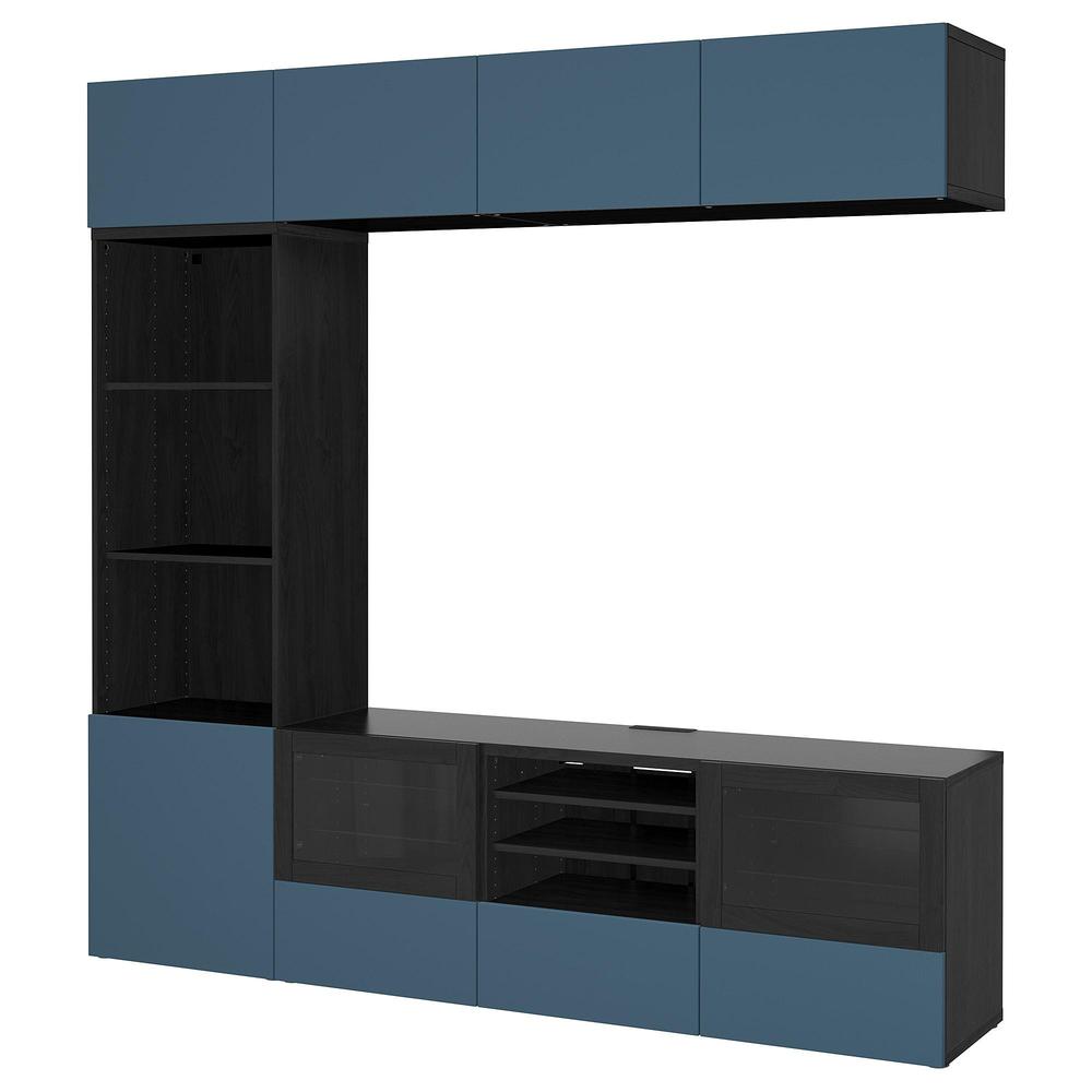 БЕСТО Шкаф для ТВ, комбин/стеклян дверцы - черно-коричневый Вальвикен/темно-синий прозрачное стекло, направляющие ящика, плавно закр 0.0/5 оценка (0 голосов)