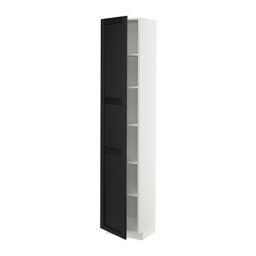 МЕТОД Высок шкаф с полками - белый, Лерх черная морилка, 40x37x200 см
