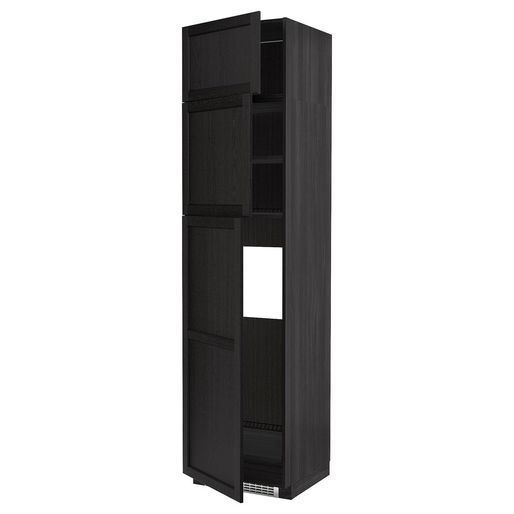 МЕТОД Высокий шкаф д/холодильника/3дверцы - под дерево черный, Лерх черная морилка