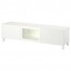 БЕСТО Тумба под ТВ с ящиками и дверцей - белый белый прозрачное стекло, направляющие ящика, плавно закр